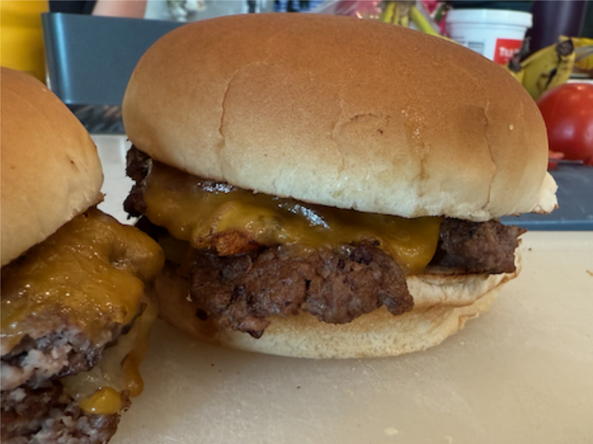 - Stack patty on patty and add to bun.